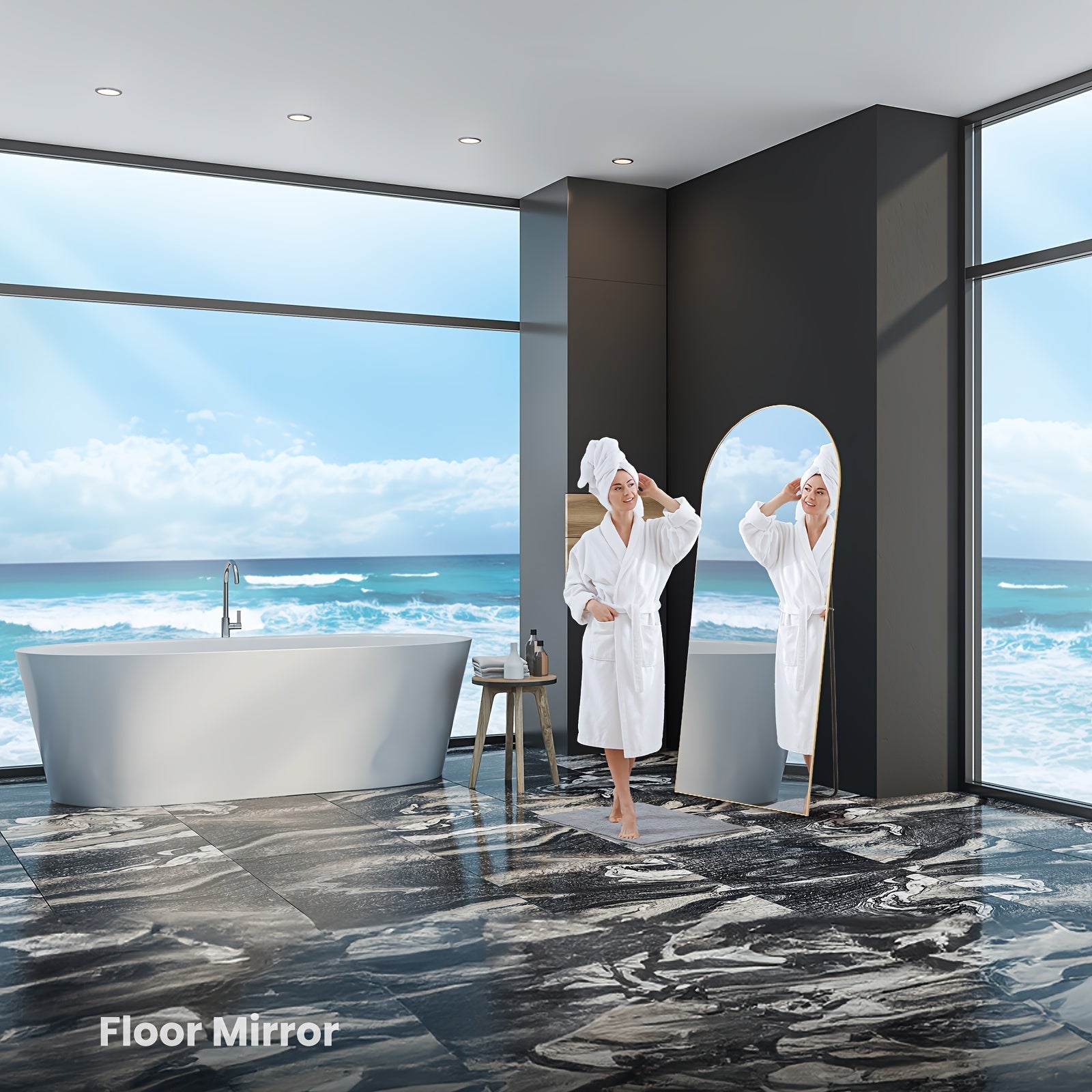 Ce Miroir Plein Longueur Arqué est plus qu'un simple miroir - c'est une pièce maîtresse pour votre maison. La technologie du verre nano garantit un reflet clair et supérieur, tandis que le cadre en alliage aluminium offre à la fois force et beauté. Avec sa fonctionnalité polyvalente, ce miroir est parfait pour n'importe quelle pièce, offrant un look moderne et élégant qui complète votre décor.